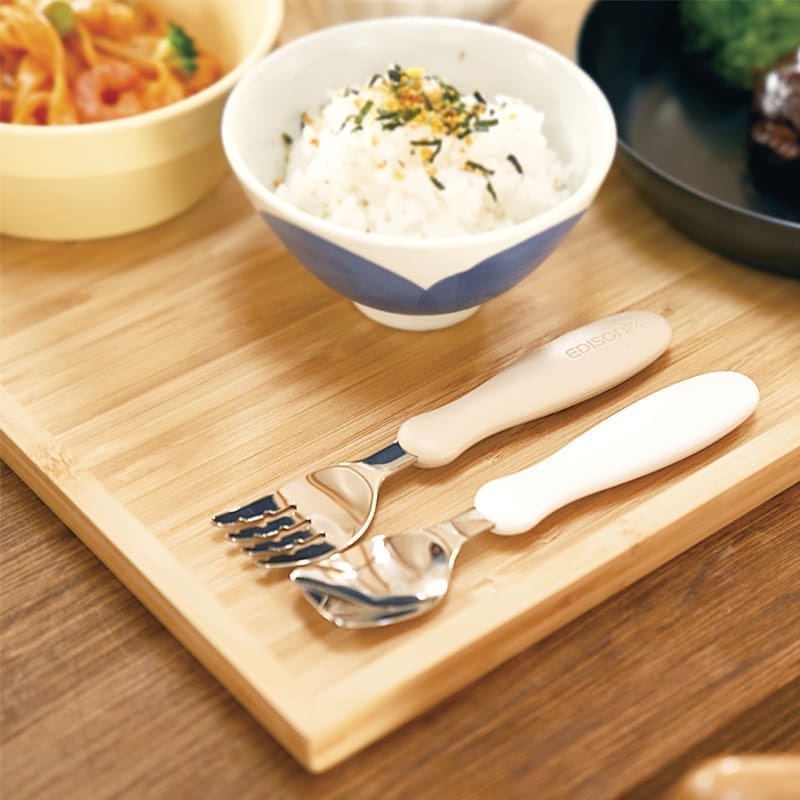 Nr.1 vaikiškos šakutės ir šaukšto rinkinys Japonijoje (kasmet parduodama virš milijono rinkinių). Idealiai tinka mokytis valgyti savarankiškai.