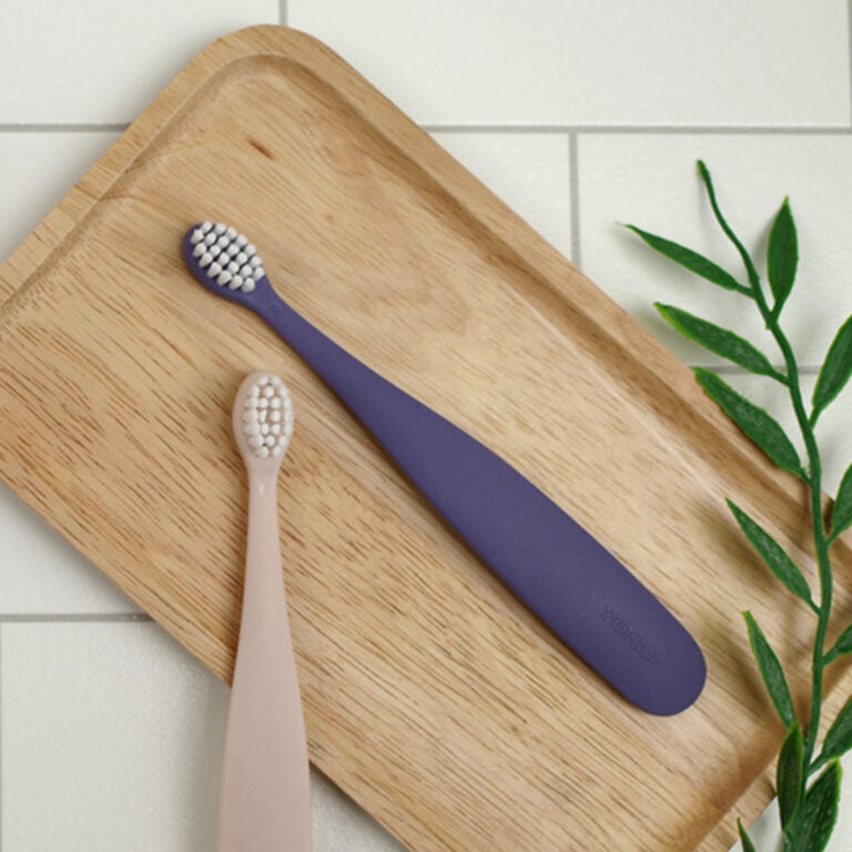 Mother-K Mažylio dantų šepetėliai, alyvinė ir kreminė (nuo 1 iki 2 metų)