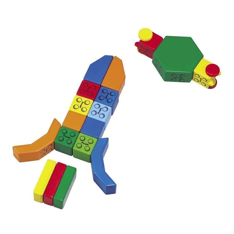 Rinkinį sudaro 31 klasikinių spalvų kaladėlė ir žaidimo žemėlapis. Lengvai kombinuojamas su kitais People Blocks magnetiniais konstruktoriais.