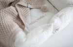 Ant paklotėlio galite išsiuvinėti vardą ir taip personalizuoti savo mažylio lizdelį!