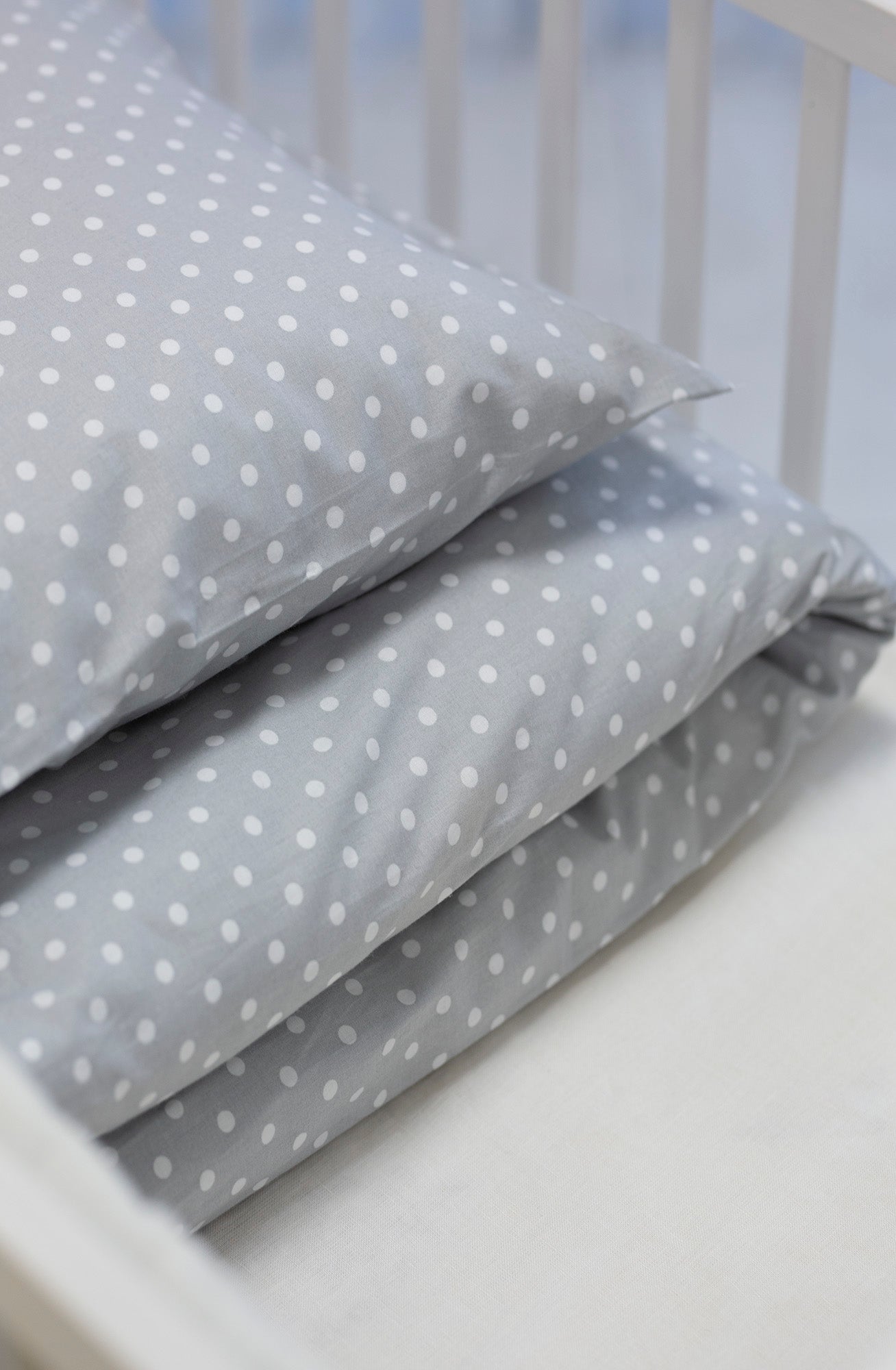 Medvilnės drobelės patalynė "Žirneliai", pilka ir balta