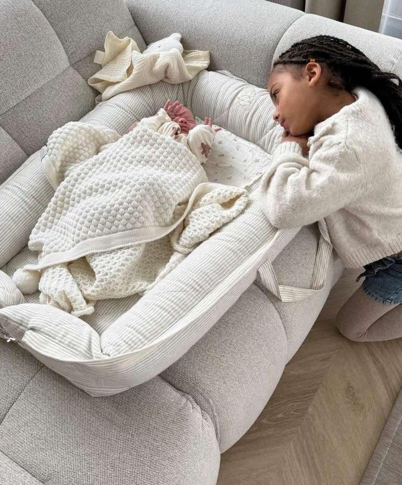 Žaismingas ir didelis muslino migdukas su mielu meškučiu numegzto iš merino vilnos, bus Jūsų mažylio geriausias miego draugas nuo pirmųjų dienų! :)