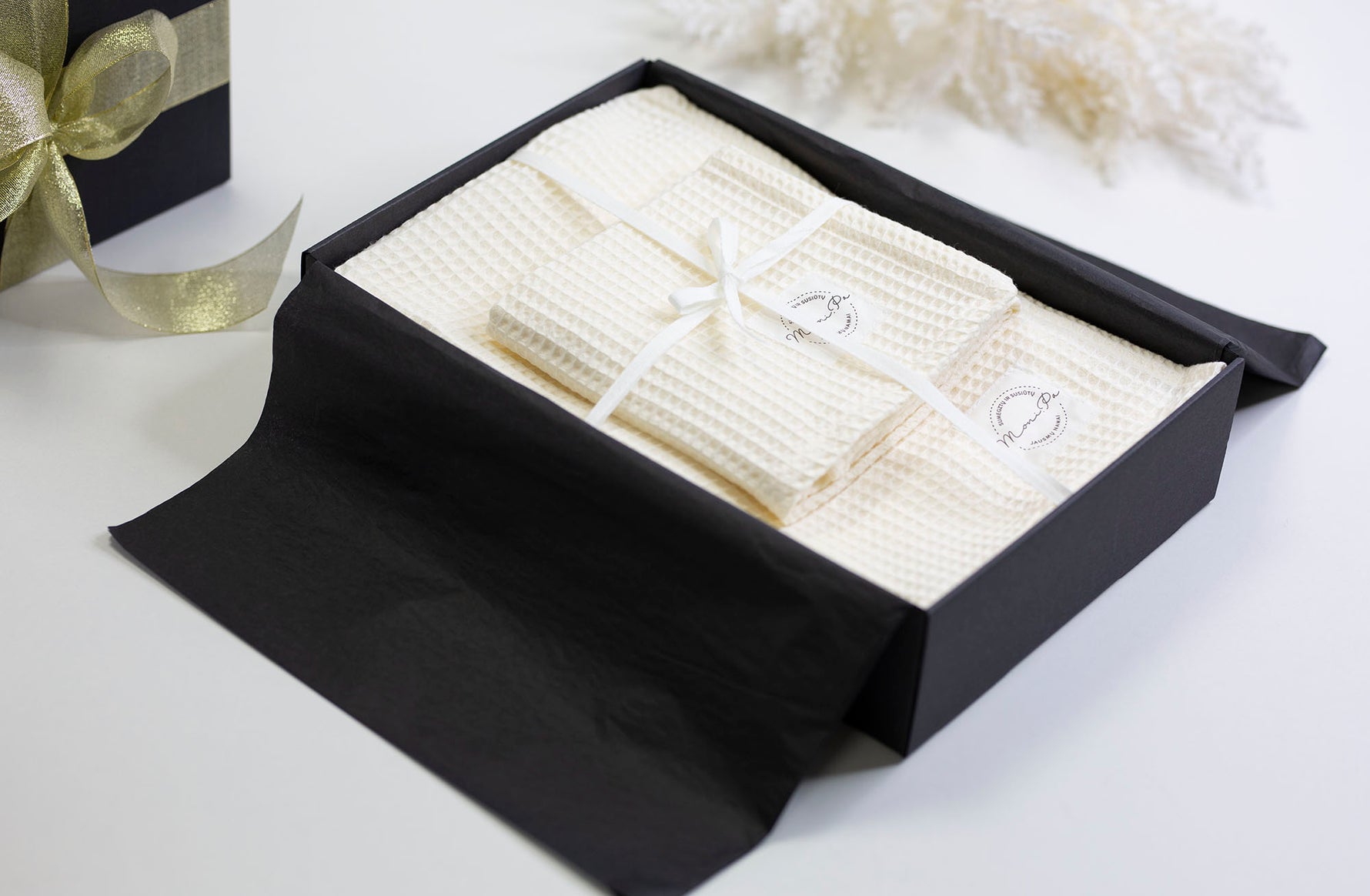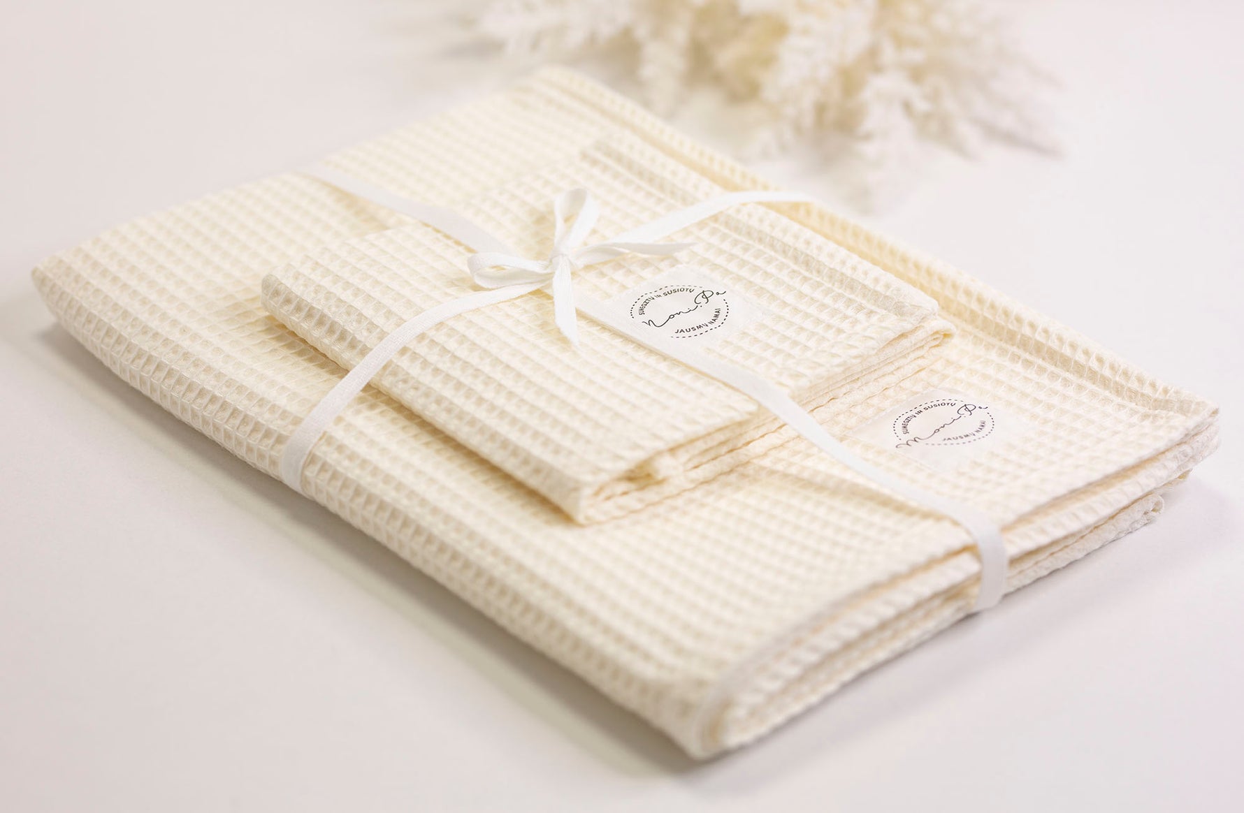 Šie rankšluosčiai ne tik praktiški, bet ir elegantiški – jų subtilus vaflinis dizainas tiks bet kokio stiliaus namams. Dailiai supakuotas rinkinys yra puiki dovana artėjančioms Kalėdoms – paruoštas dovanoti su meile ir šiluma! 🎄✨