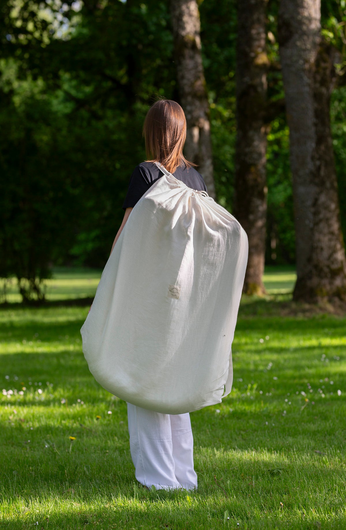 2. Kelioninis lizdelio krepšys su rankenomis iš 100% lino - patogus lizdelio transportavimui, itin pravers dažnai keliaujantiems.