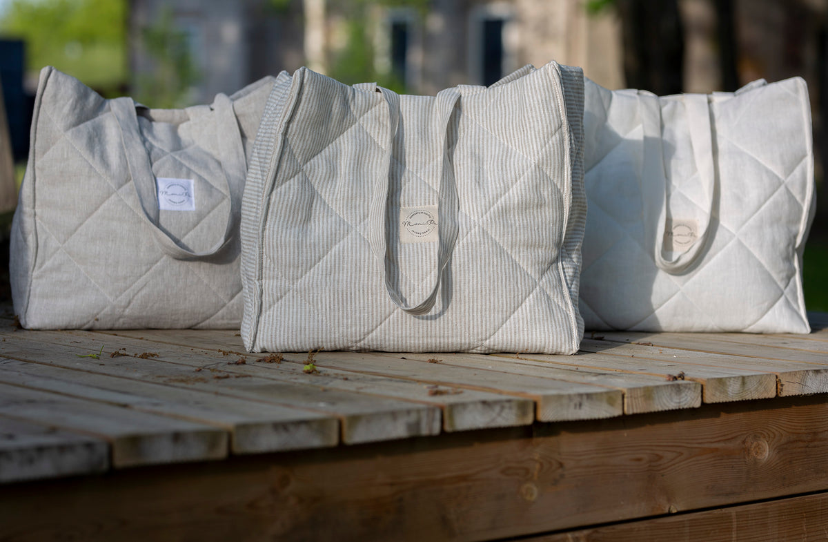 Švelnūs atspalviai, dygsniuotas paviršius ir minimalistinis dizainas pabrėžia natūralų grožį ir tinka prie įvairaus stiliaus aprangos. Patogios, plačios rankenos užtikrina komfortą nešiojant, o vidinė erdvė – pakankamai talpi tiek kasdieniams daiktams, tiek paplūdymio reikmenims ar kūdikių priežiūros priemonėms.