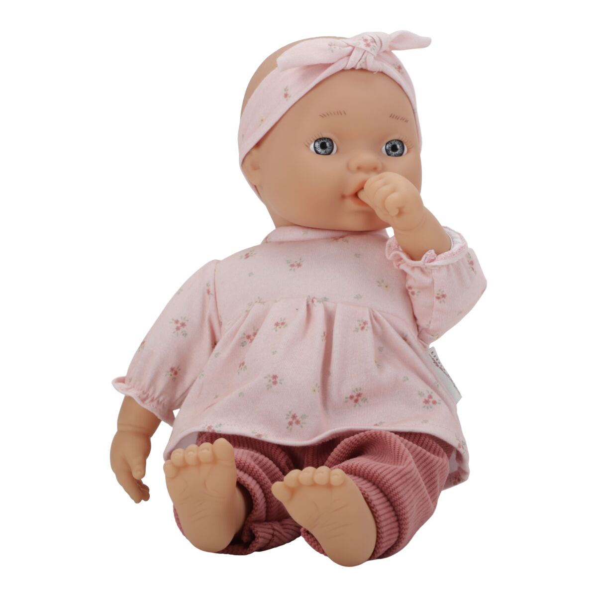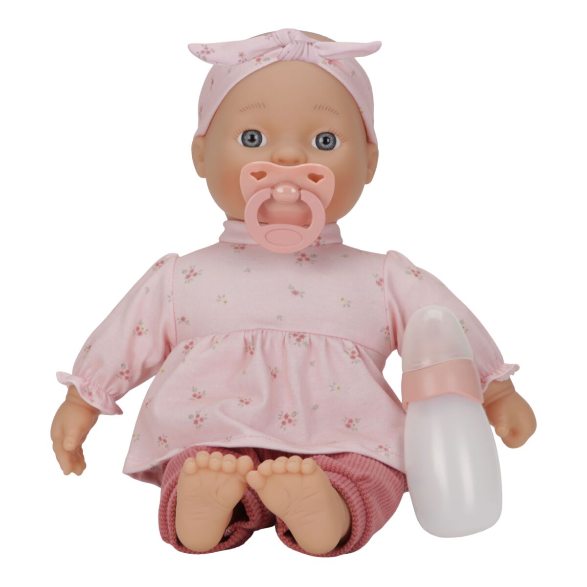 Susipažinkite su mažyle Lily. Apkabink ją ir pasirūpink ja. Lily yra žavinga ir tikroviška lėlė, švelnaus ir švelnaus kūno, kuri mėgsta būti mylima. Galite pakeisti jos drabužius, padėti užmigti ir nuraminti čiulptuku. Kai ji alkana, pasiūlykite jai pieno buteliuką. Vaikams patinka mėgdžioti viską, ką daro jų tėvai, o ši lėlė kūdikis įkvėps jūsų mažylį ugdyti ir rūpintis vaidmenimis. Lily dėvi plaukų juostą, „Rosy Meadows“ dizaino suknelę ilgomis rankovėmis, puoštą rožinėmis kelnėmis. Drabužių keitimas lavina smulkiąją motoriką, o čiulptukas ir pieno buteliukas suteikia interaktyvaus žaidimo elemento.