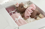 • Juos papildo rankų darbo nertas žaisliukas „Elnytė“ su rožinais rūbeliais – miela, kruopščiai sukurta draugė mažajai svajotojai.