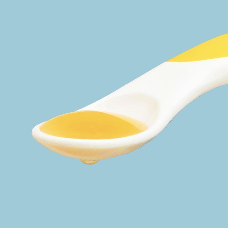Užapvalinta šaukštelio forma ir dydis pritaikyta mažylio burnytei.