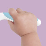 Ergonomiška, išgaubta rankenėlė atitinka natūralius kūdikio griebimo įpročius, idealiai telpa mažylio delne ir yra patogi naudoti. Skirta dešiniarankiams.