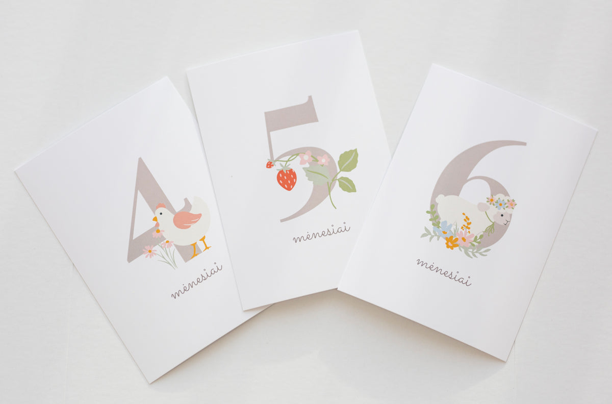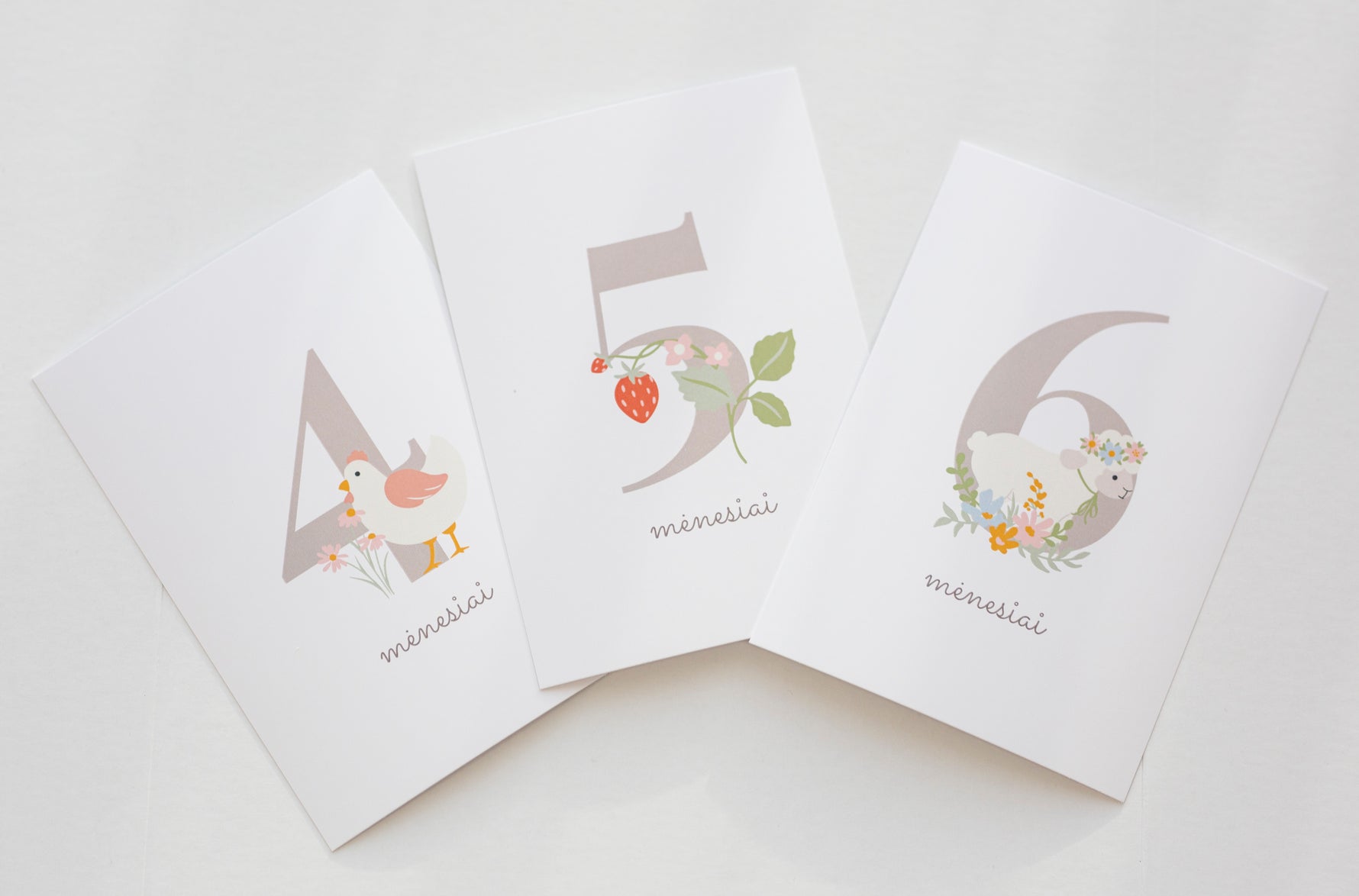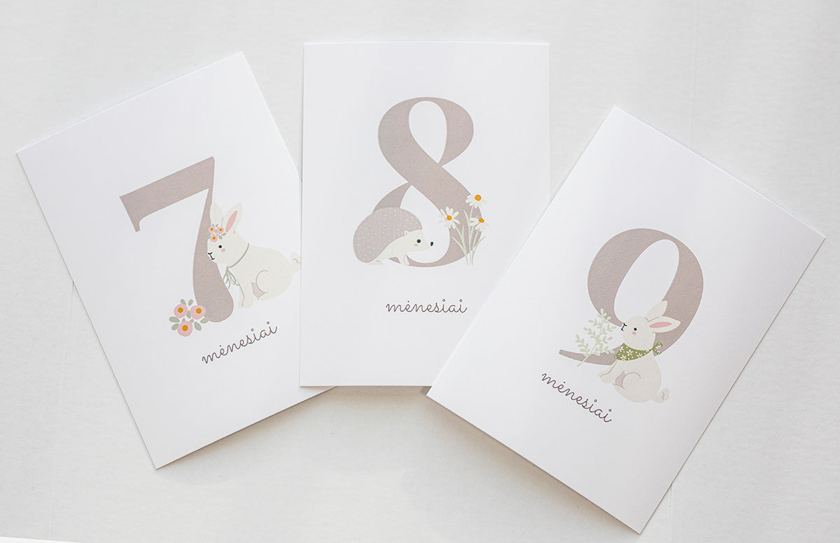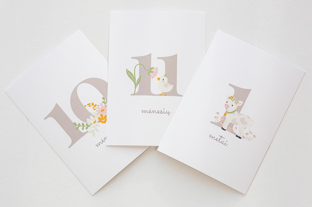 Kiekviena kortelė puošta skaičiumi ir iliustracija su mielais gyvūnėliais ar augalais – tai ne tik dekoratyvus akcentas nuotraukai, bet ir jautrus prisiminimas jūsų šeimos istorijai.