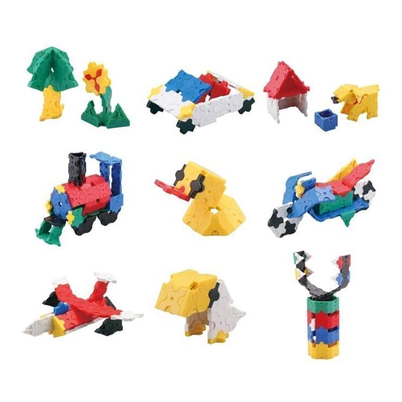 LaQ detalės yra daugkartinio naudojimo, iš rinkinio detalių galima perkonstruoti 9 skirtingus modelius.