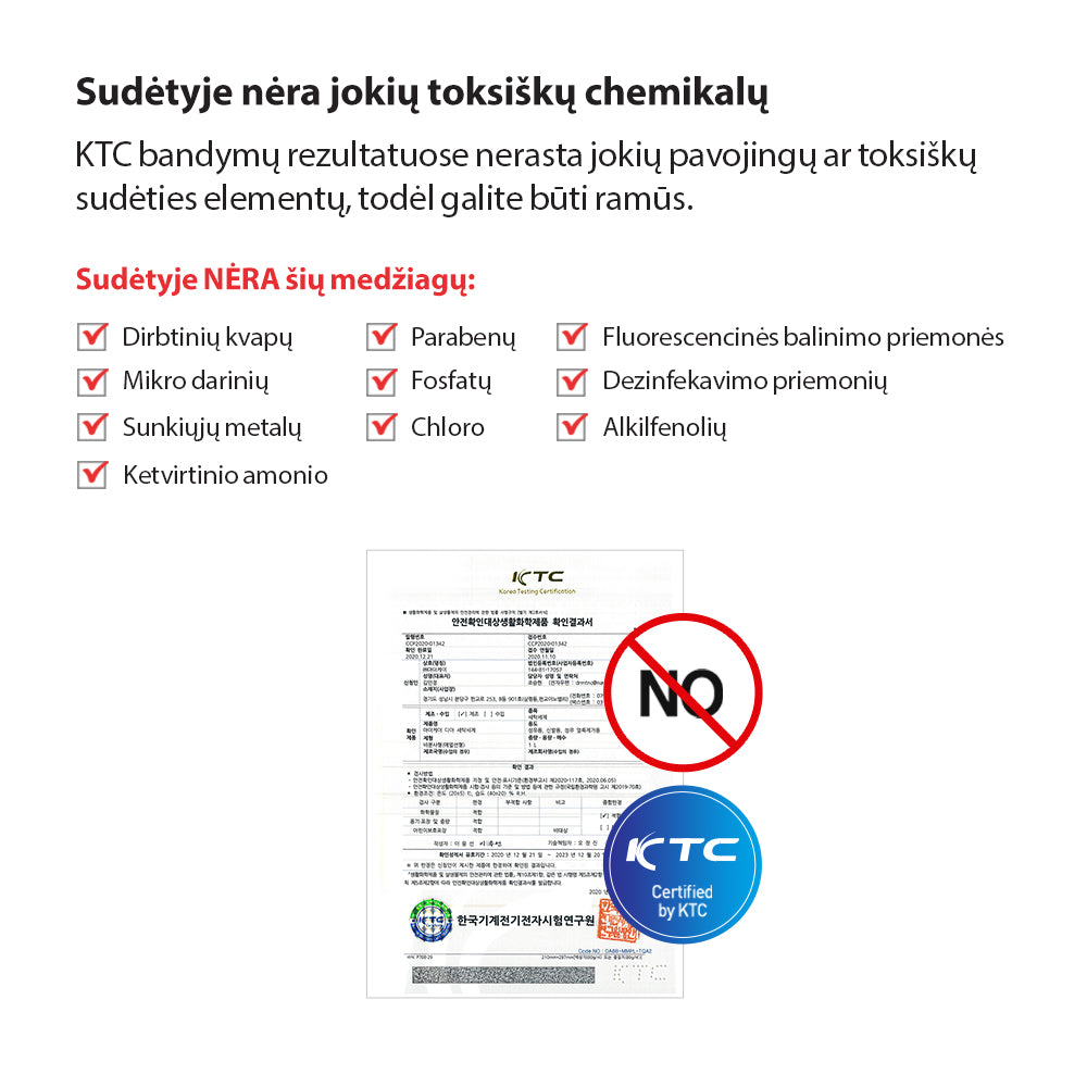 Sudėtis: [Main substances] Purified Water, APG (Alkyl (C=10-16) Glycoside, etc.), Fatty Acids (C=12-18) Me Ester, Sulfonated, Sodium Salts [Preservative] Preservative Mixture (Caprylyl Glycol, etc.) [Surfactant] APG (Alkyl (C=10-16) Glycoside, etc.) (Non-Ionic), Fatty Acids (C=12-18) Me Ester, Sulfonated, Sodium Salts (Anionic), N,N-Dimethyldodecylamine-n-oxide (Amphoteric Ionic).