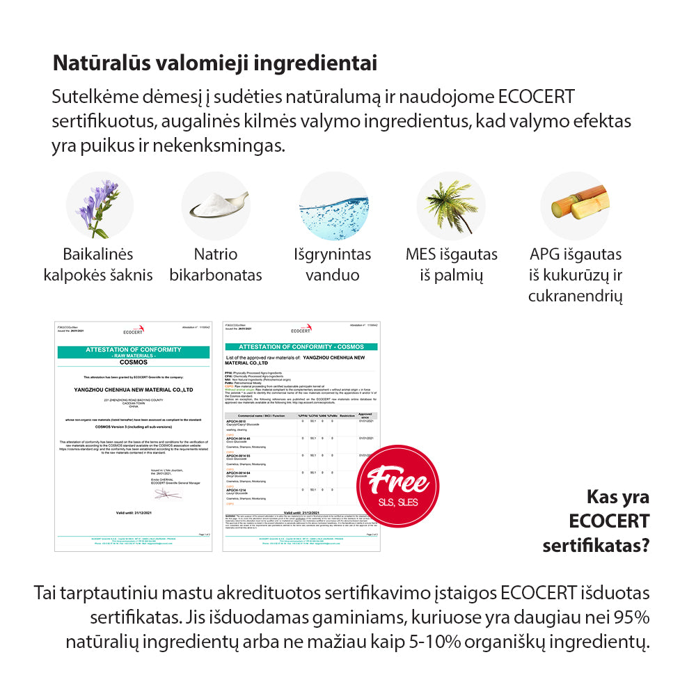 1. Natūralūs ingredientai ir iš gamtos išgautos, EWG patikrintos natūralios sudedamosios dalys.