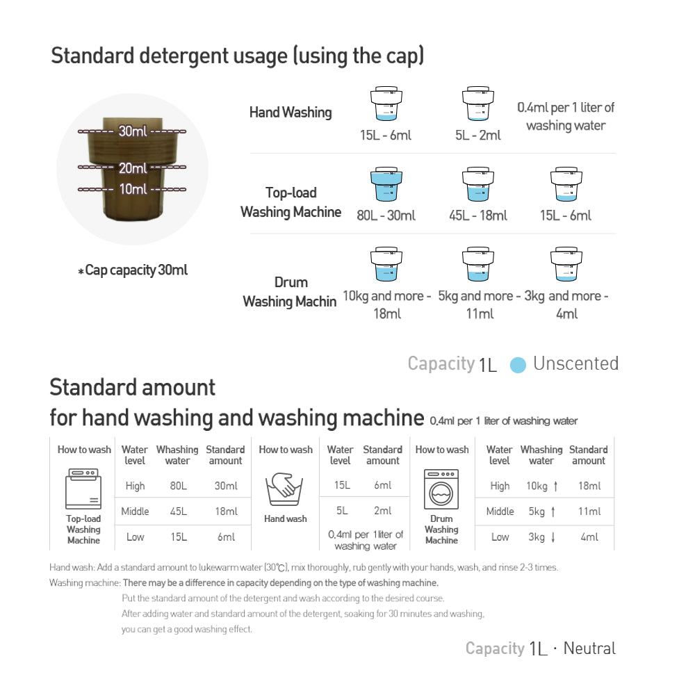 1. Reikiamą kiekį skalbimo įpilkite į drungną vandenį (apie 30℃), gerai išmaišykite.