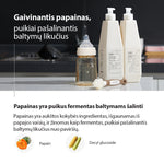 7. Dėl natūralių ingredientų gali ploviklyje atsirasti nuosėdų, pakisti spalva ar konsistencija, tačiau tai neturi įtakos gaminio kokybei ir naudojimui.