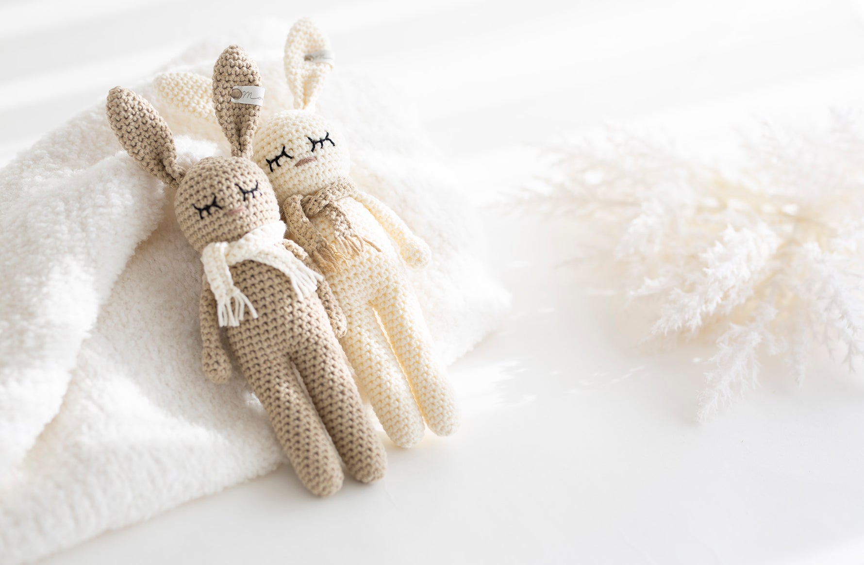 Nertas žaisliukas "Zuikutis su šalikėliu"
