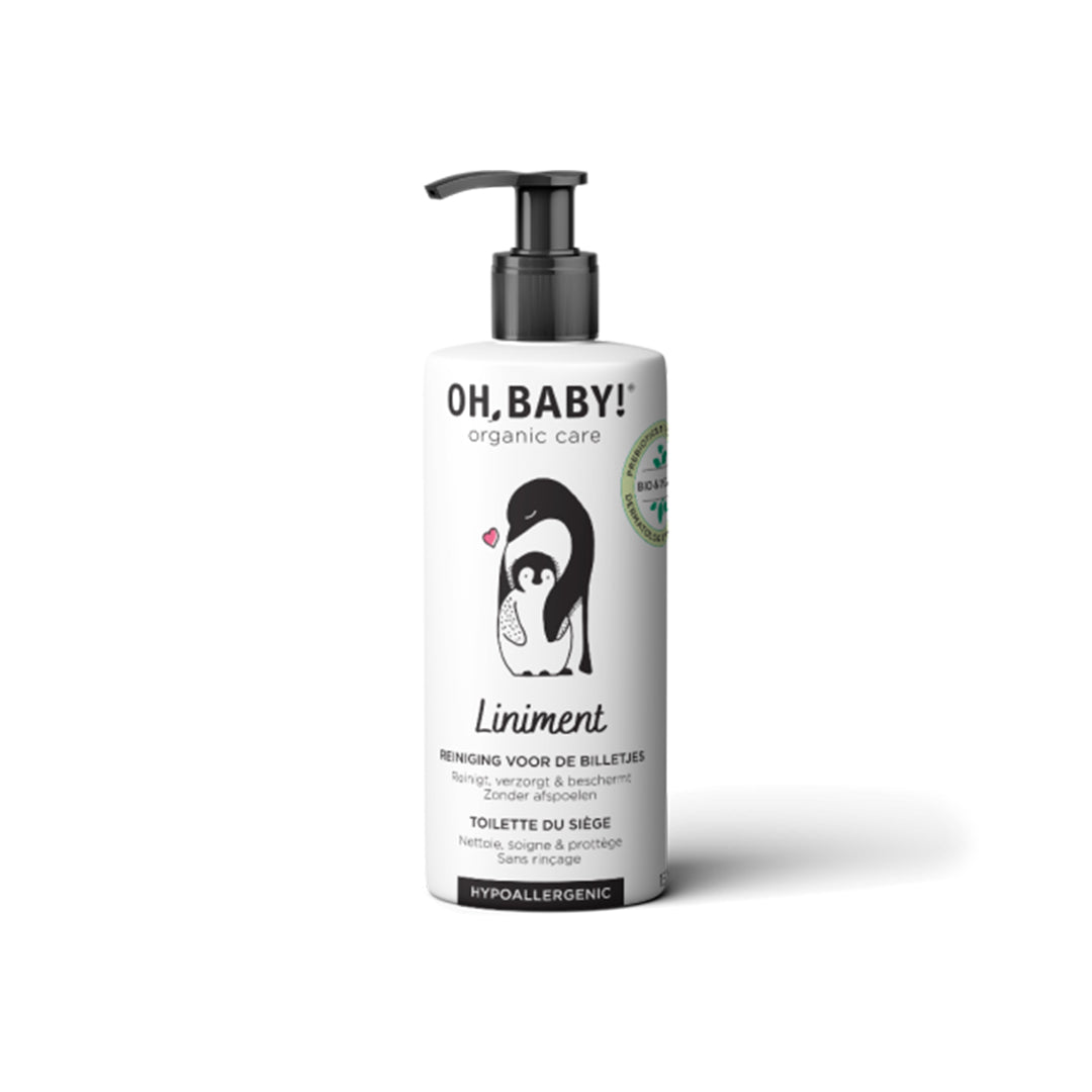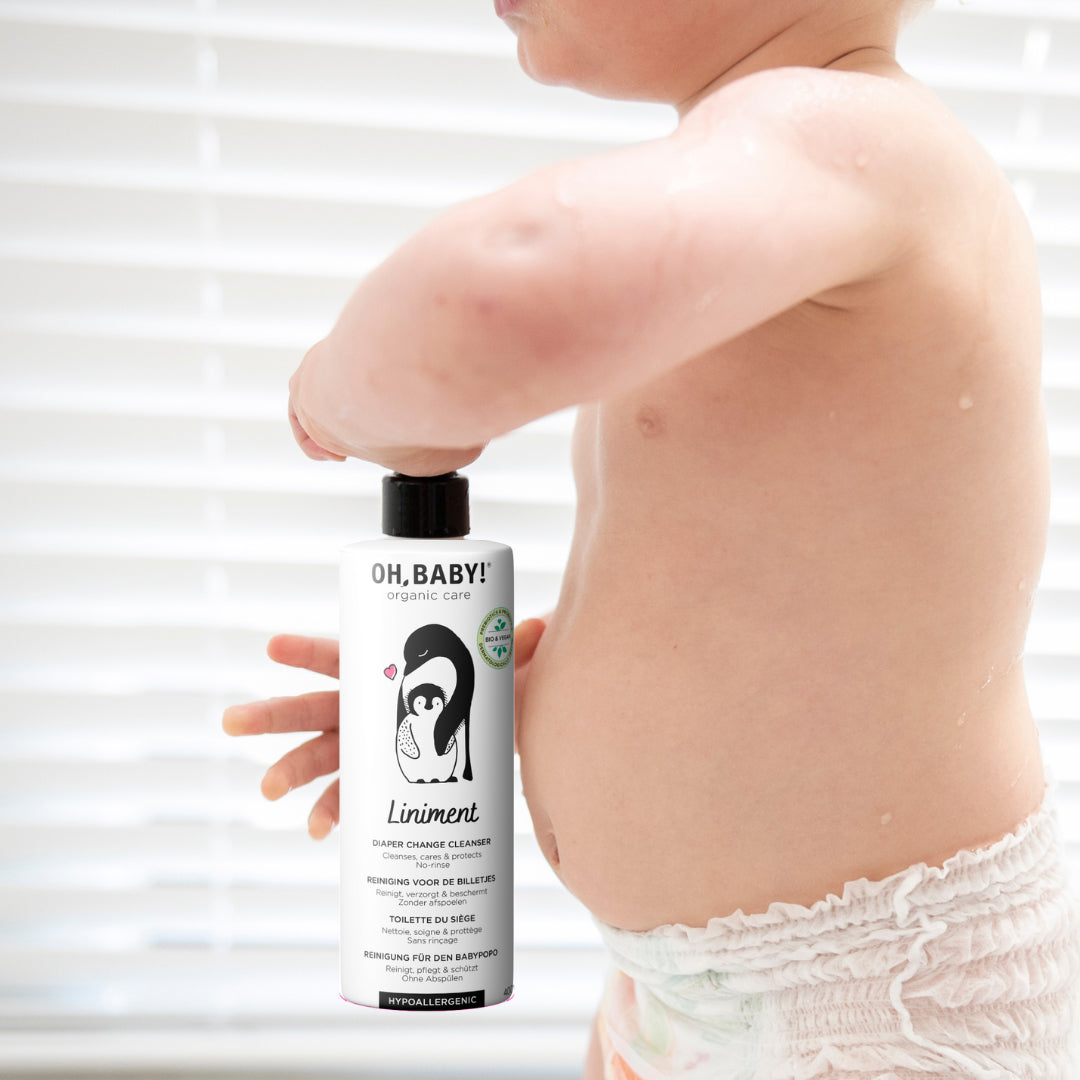 “Oh, Baby!” Linimentas yra 2in1 – jis yra puikus sauskelnių keitimo valiklis. Jis nuvalo ir apsaugo jūsų kūdikio užpakaliuką. Linimente yra kalkių vandens – kad sunaikintų bakterijas, ir aliejaus – kad apsaugotų jautrią odelę. Linimentas pagamintas migdolų aliejaus pagrindu – jis reguliuoja drėgmę, ramina sudirgimus ir paraudimą, yra prisotintas mineralų ir vitaminų. Todėl jis stiprina odos hidrolipidinį sluoksnį. Taigi, jums nebereikia drėgnų servetėlių ar kremo nuo iššutimų. Ir galite atsisveikinti su sauskelnių bėrimu!