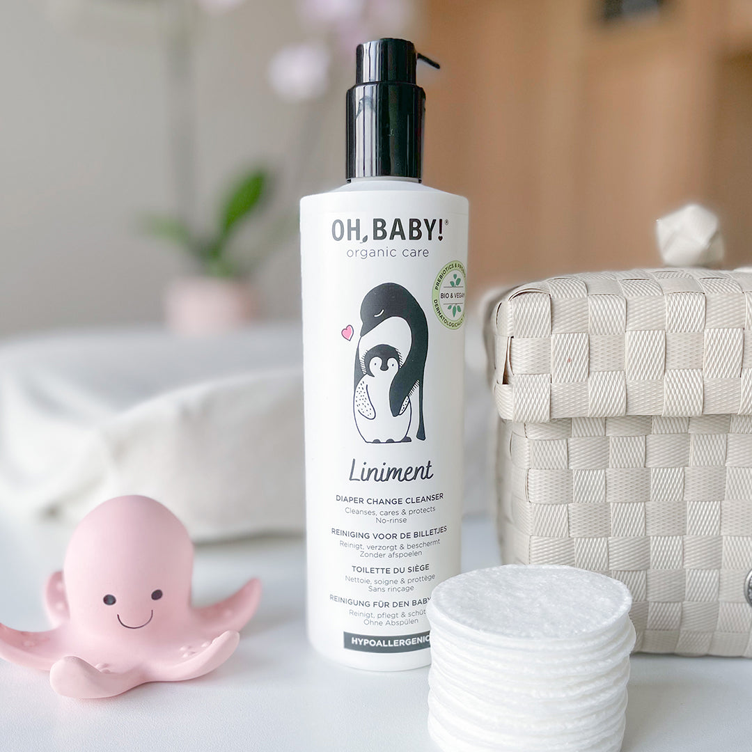 Su turtingu terminio vandens ir migdolų aliejaus mišiniu. “Oh, Baby!” linimentas valo, ramina ir stiprina apsauginį kūdikio užpakaliuko odos sluoksnį. Šiame ekologiškame ir veganiškame linimente taip pat yra prebiotikų ir probiotikų, kurie saugo odą nuo kenksmingų bakterijų ir paraudimo. Be to, šioje formulėje taip pat yra vitaminų A, B, D ir E. Ir, žinoma, visi mūsų produktai yra dermatologiškai patikrinti ir hipoalergiški!
