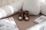 Kūdikio tapukai – švelnūs, minkšti ir labai mieli. Nevaržo judesių, leidžia odai kvėpuoti ir šildo be perkaitimo. Lengvai apsiaunami, su patogiu raišteliu – tapukai nesmunka nuo kojyčių ir tinka tiek gulintiems kūdikiams, tiek pradedantiems ropoti.